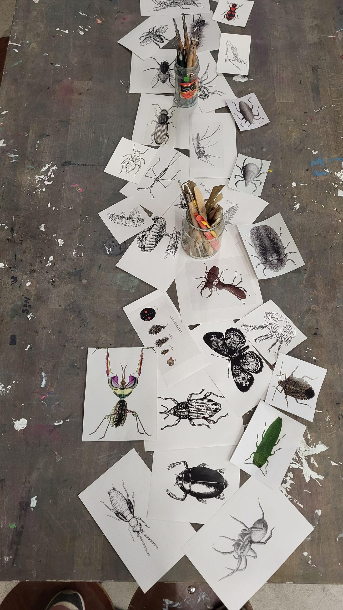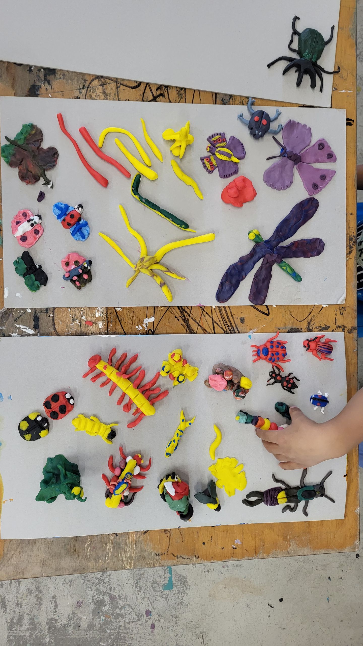 Dieses mal setzten wir uns mit dem Thema Insekten auseinander: Nachdem wir gemeinsam ein Bilderbuch angeschaut und eine Geschichte gehört haben, gestalteten wir eigene Insekten aus Knete und setzten diese dann als Tiefdruck um.