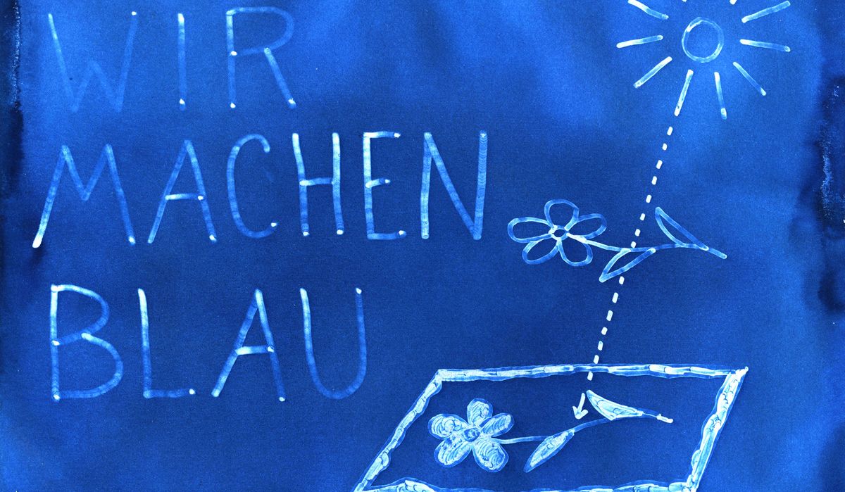 In der ersten Sommerferienwoche (1.-5. Juli 2024) veranstalten wir eine Intensivwoche. Wir experimentieren mit einem speziellen fotografischen Druckverfahren, der sogenannten Cyanotypie, auch Sonnendruck genannt. Mit Sonnenlicht, lichtempfindlichem Papier und verschiedenen Abdeckmaterialien entstehen Drucke - alles in Blau!