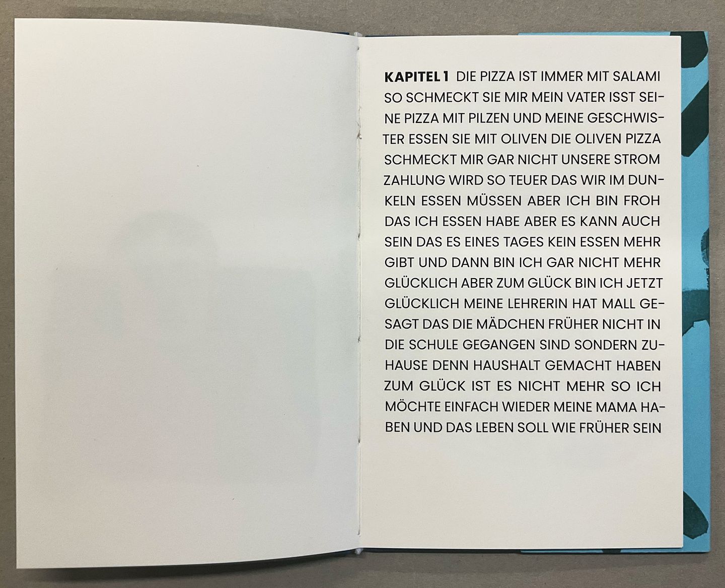 Während mehr als einem Jahr besuchte Yaren die Druckstelle. Eines Tages nahm sie den Laptop der Druckstelle und begann zu tippen. Die «Traurige Geschichte», die da ihren Anfang nahm, ist etwas vom Kraftvollsten, was wir bisher lesen durften. Mit welch sorgsam gewählten Worten da erzählt wird, mit welcher Feinheit komplexe Gefühle beschrieben werden, wie unmittelbar spürbar da die innere Not der Protagonistin an einen herandrängt – es nahm uns schlicht den Atem. Bei einem späteren Besuch einer Tagesstruktur-Gruppe entschied sich Yaren spontan, die Geschichte den anderen Kindern vorzulesen. Das völlige Ausbleiben jeglichen Rumblödelns, die gebannte Aufmerksamkeit, die tiefe Stille, die danach einsetzte und mit der die Kinder das Erzählte würdigten - das alles liess keine Zweifel daran, wie stark diese traurige Geschichte in Wahrheit ist.